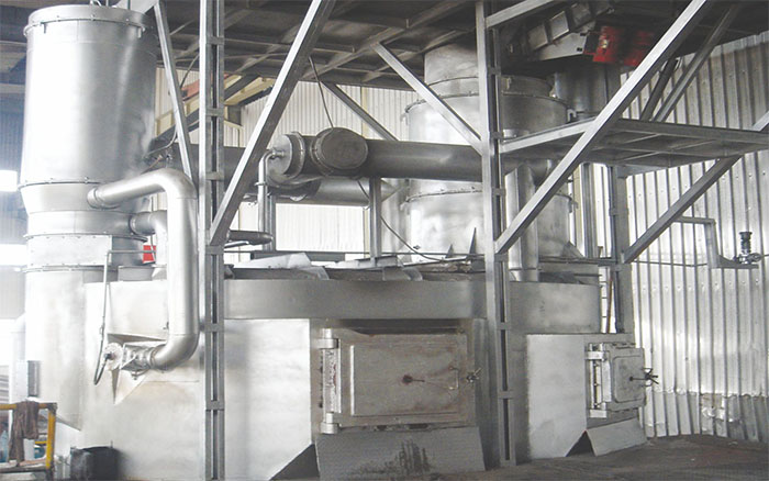 ·加料室,加料口下部,被預熱過的廢鋁料在爐子底下以浸泡方式熔化;