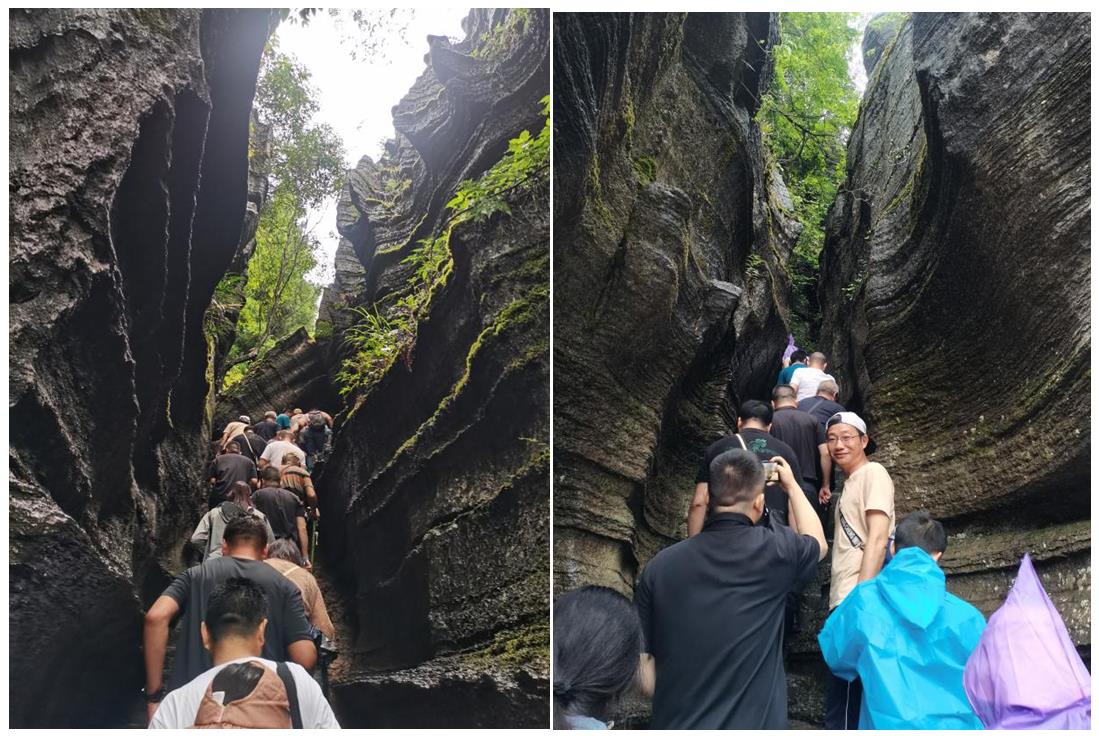 第三天,我們來到被稱為“世界第一奧陶紀石林”的梭布埡石林。走進梭布埡石林,猶如走進一座海底迷宮,穿行于此,仿佛神游時光隧道,有一種神秘的穿越感。有趣的人生,一半是人間煙火,一半是山川湖海,大家沉浸在綠樹奇石環(huán)繞的環(huán)境里,盡情享受眼前的美景,心也跟著飛揚。